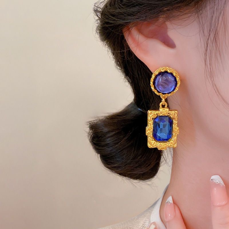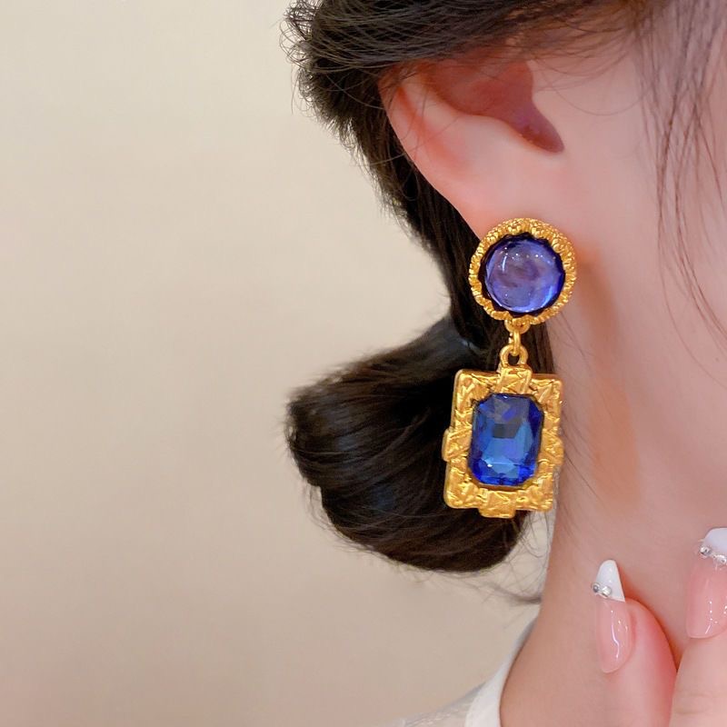 Diamond-encrusted pearl crystal tassel French retro earrings